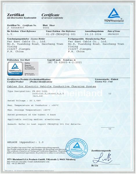 液冷电缆欧标TÜV认证